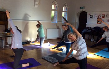 The Yoga class meets on Mondays from 9.15 to 10.15 in Hale Barns Unitarian Church Hall on Hale Road. The cost is £2 per session.